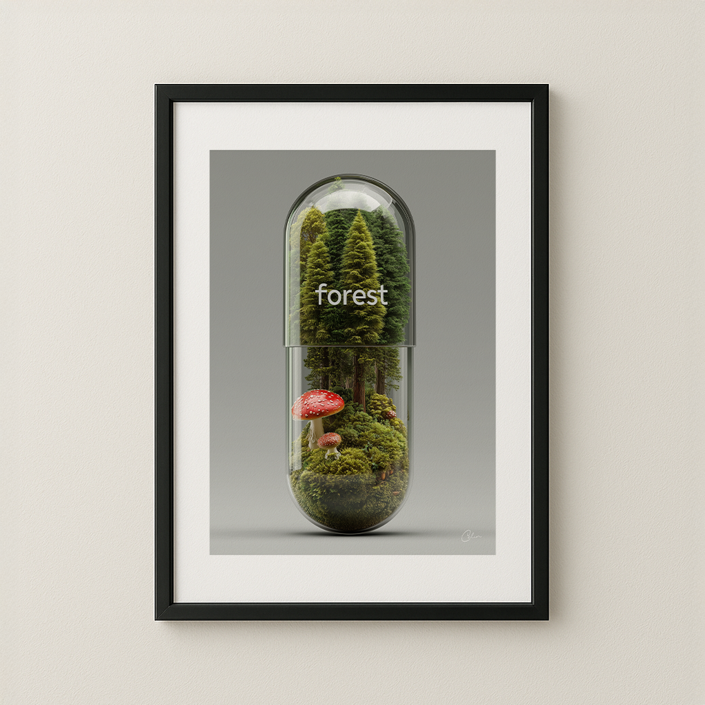 Varje konstverk trycks på premium matt papper i en strikt begränsad upplaga om 100 exemplar. Inramade konstverk monteras professionellt i produktionen och skickas klara att hänga – inga verktyg, ingen extra hantering.