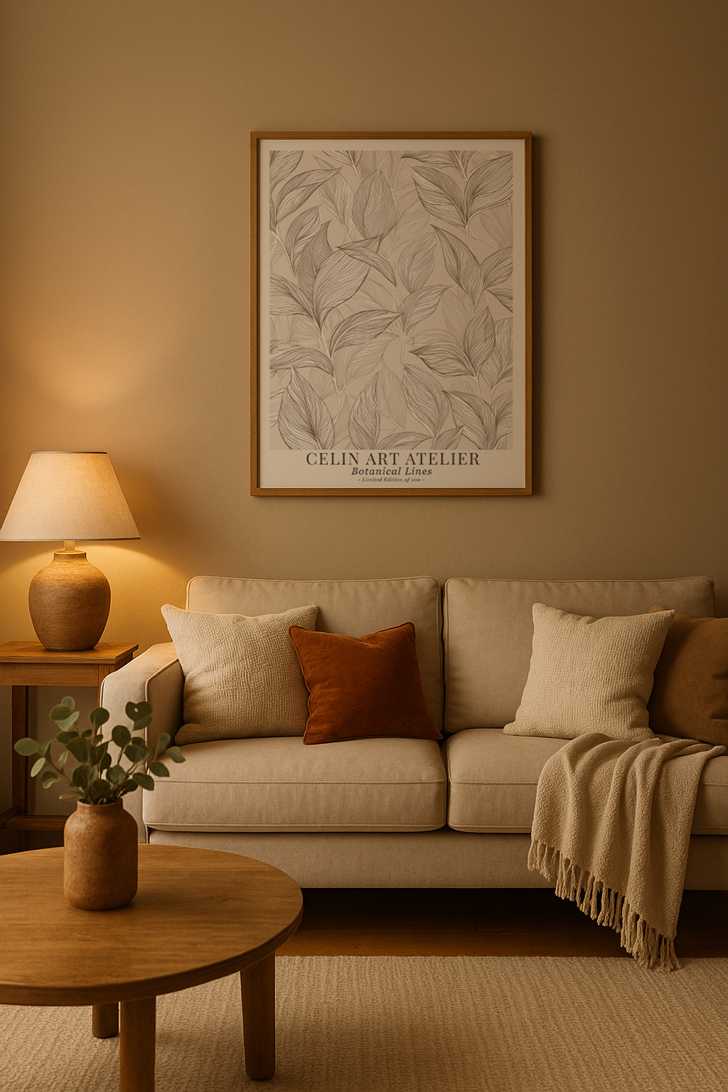 En delikat och strukturerad komposition inspirerad av naturens elegans. Botanical Lines blandar fina detaljer med minimalistisk harmoni, vilket skapar en tidlös estetik som förstärker lugn och balans. Perfekt för vardagsrum, sovrum eller hall.