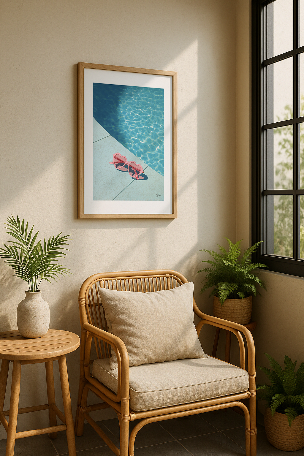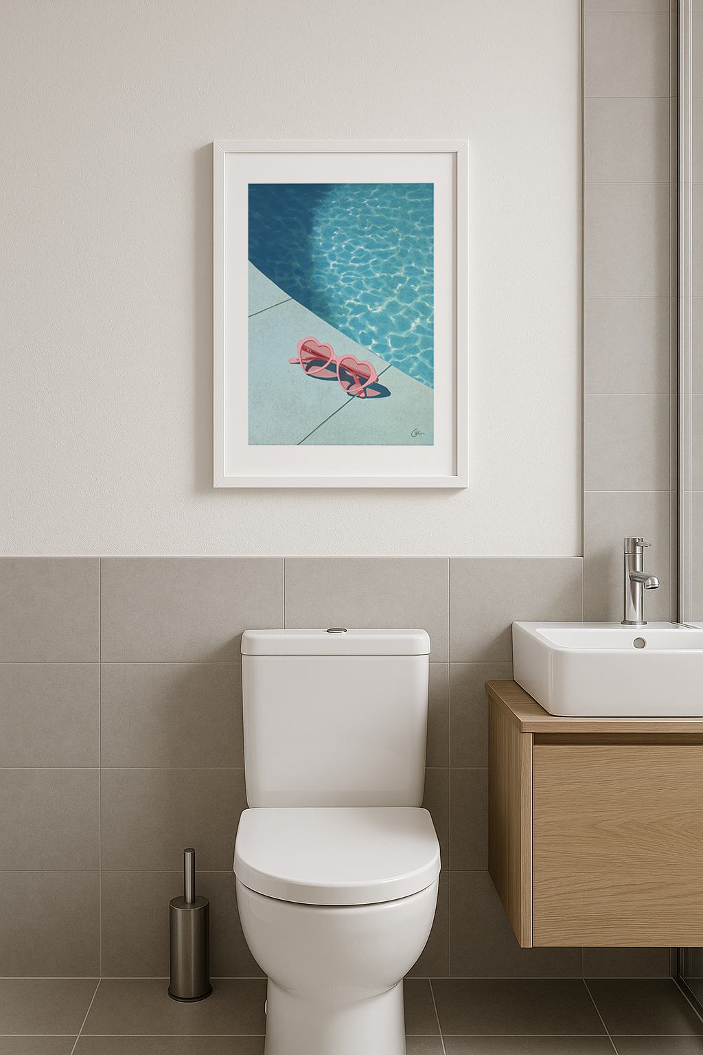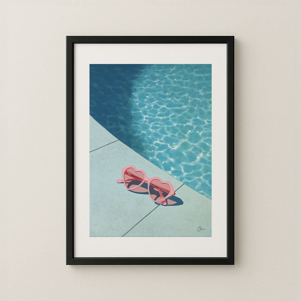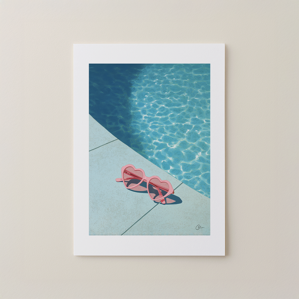 En solblekt vrå, stilla vatten och ett par hjärtformade solglasögon kvar. En scen som dröjer sig kvar.