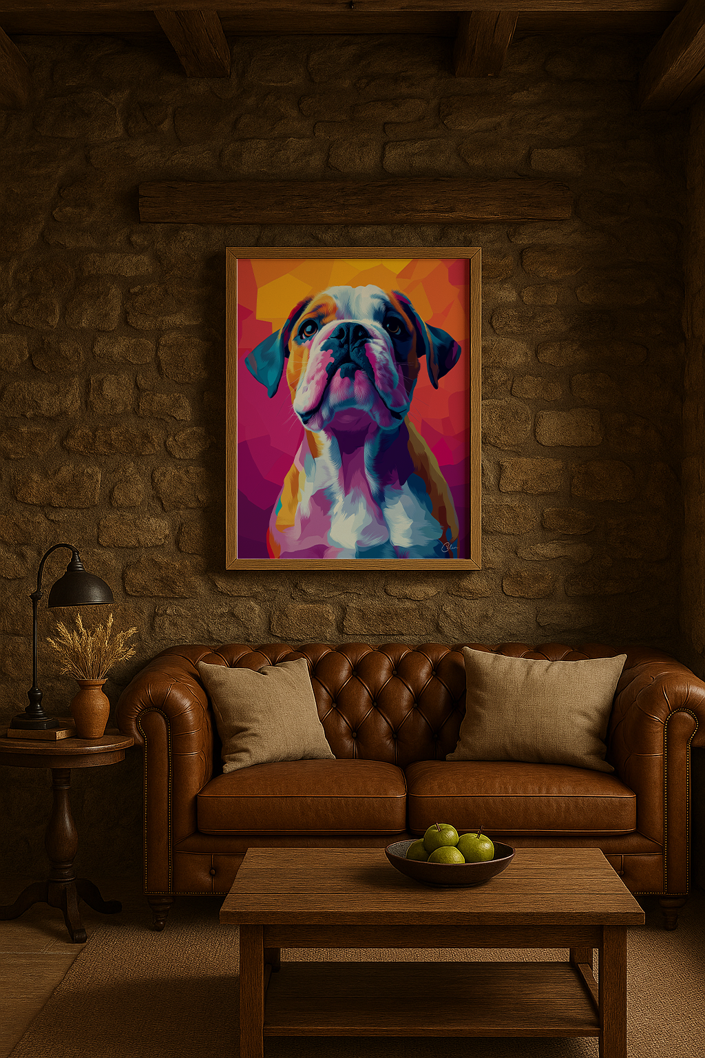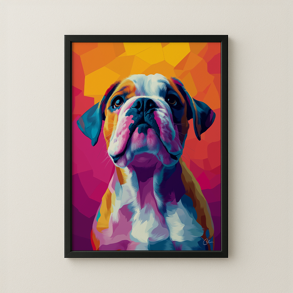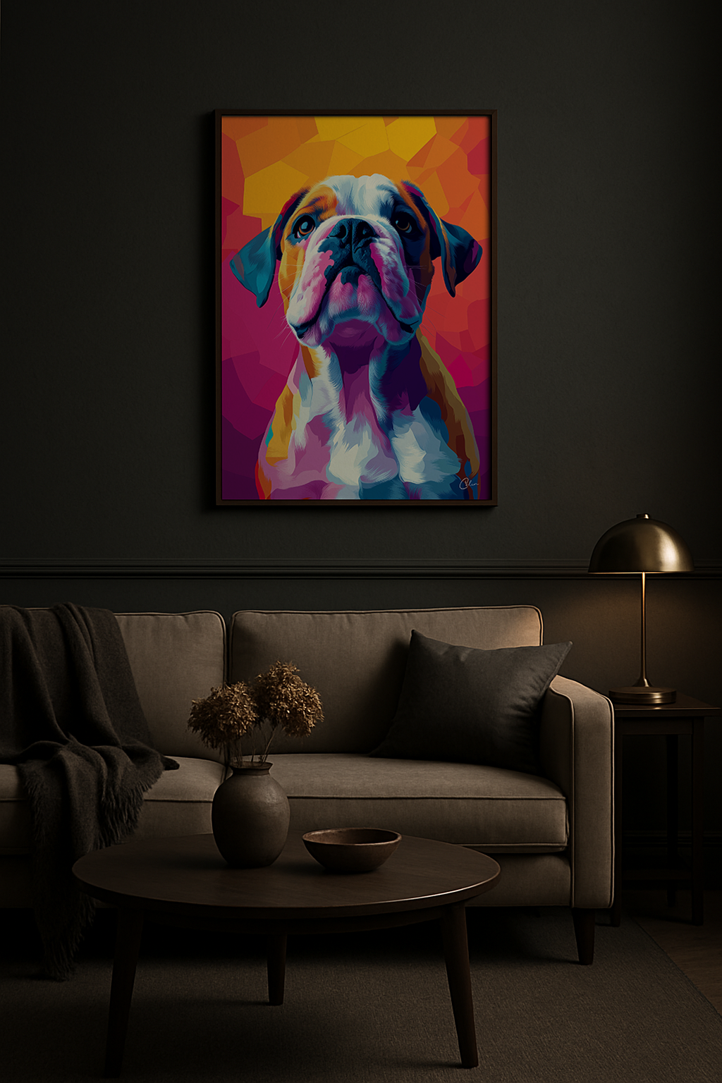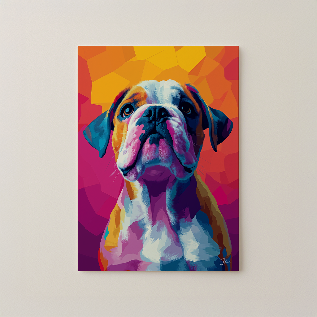 En djärv och färgglad hyllning till karaktär och styrka. Pop Instinct fångar charmen och självförtroendet hos en bulldogg i slående geometriska toner, och blandar modern popkonstenergi med tidlös personlighet. Perfekt för vardagsrum, barnrum eller hall.