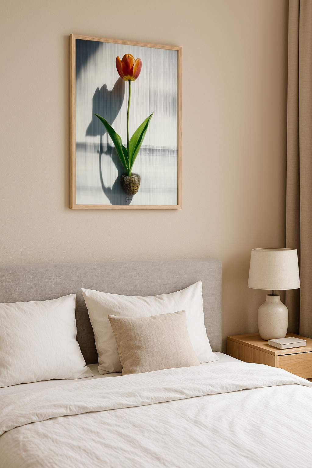Jordnära men ändå nåbar. En tulpan som kastar mer än bara skugga – den bär på stillhet, tålamod och närvaro.