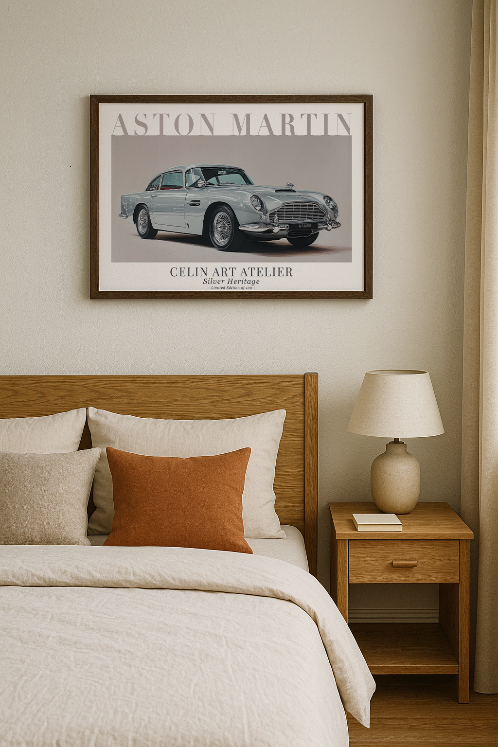 Silver Heritage fångar den tidlösa elegansen hos en klassisk Aston Martin med noggranna detaljer och en raffinerad bilestetik. Den polerade kromen, de mjuka silvertonerna och den ikoniska silhuetten skapar en sofistikerad mittpunkt för vardagsrummet, hemmakontoret eller garaget. Detta konstverk passar särskilt bra i utrymmen med grå, metalliska, svarta eller dämpade neutrala paletter.