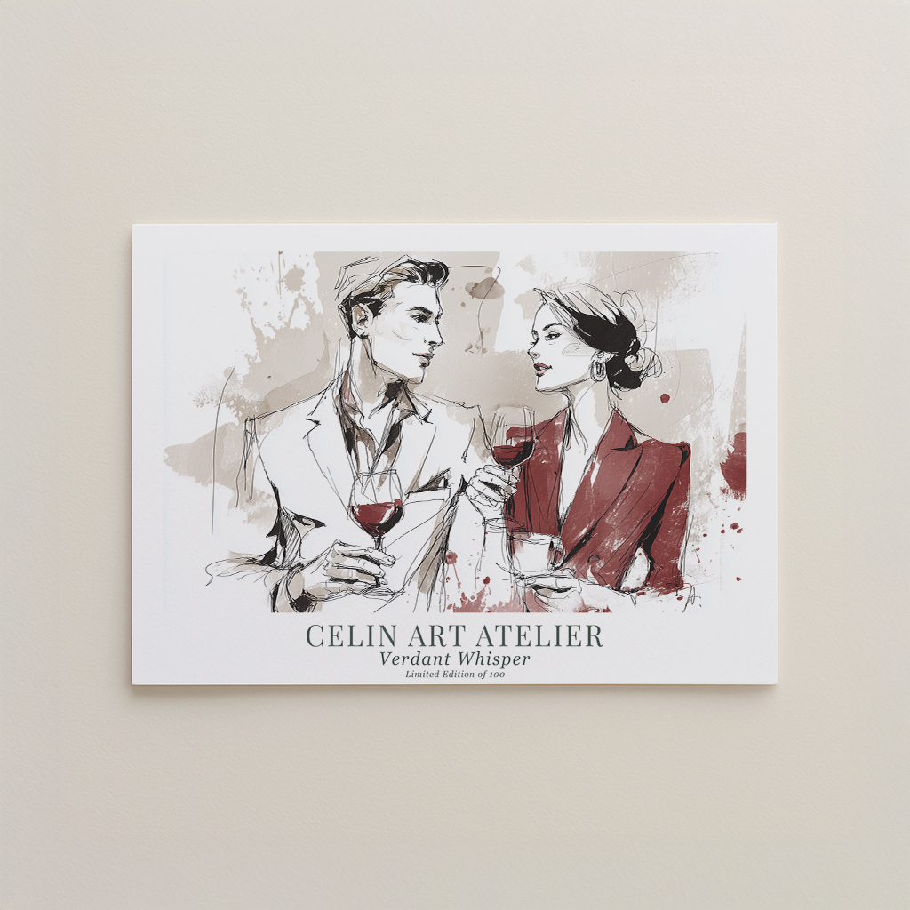 Wine Exchange ger liv åt en modern illustrationsstil med varma neutrala färger, uttrycksfulla linjer och en subtil känsla av berättelse mellan två karaktärer som delar ett glas rött vin. Konstverket tillför modern sofistikering till vardagsrum, matsal eller hemmakontor, särskilt i utrymmen inredda med beige, vinröd, svart eller mjuka neutrala toner.